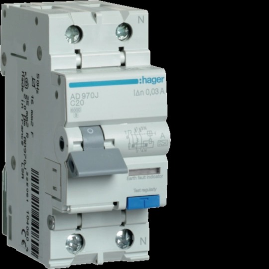 20A DP RCBO 30mA C CURV,HAGER TYPE A