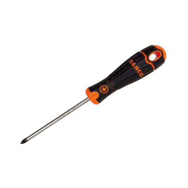 Professional Phillips screwdriver designed for precision and durability in electrical, mechanical, and general maintenance applications. Manufactured by Bahco, the B192.001.100 features a high-performance chrome-plated alloy steel blade for corrosion resistance and long service life. The ergonomic two-component handle provides excellent grip and torque transfer, while the anti-slip surface ensures comfortable use during extended work. Clearly marked handle identification allows quick recognition of screw type and size. Ideal for professional tradespeople and technicians.