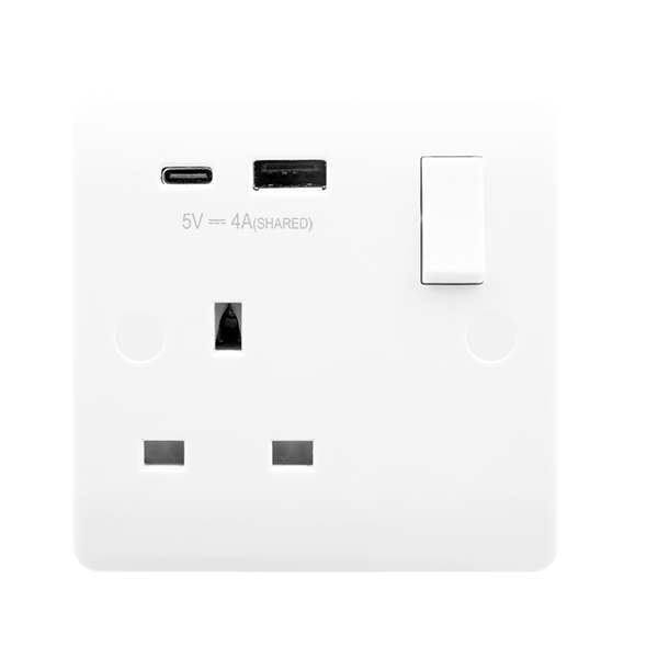 MODE 13A 1 GANG SWITCHED SAFETY SHUTTER SOCKET OUTLET WITH TYPE A & C USB (4A) OUTLETS